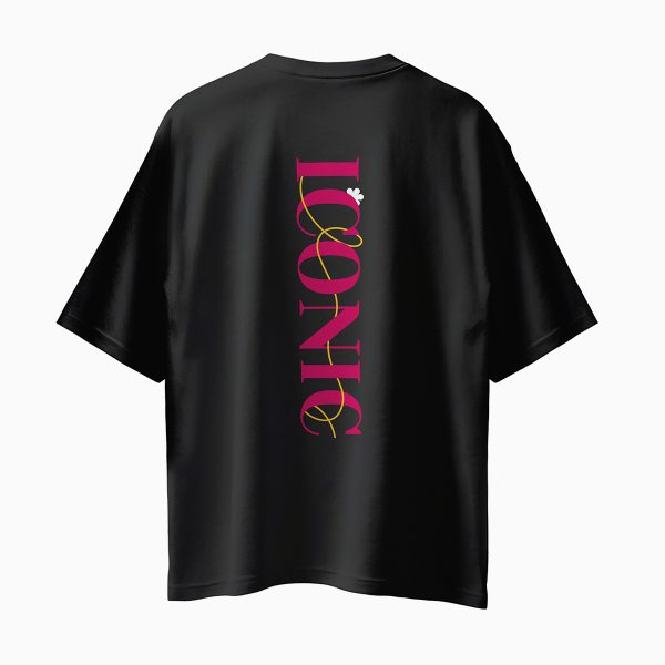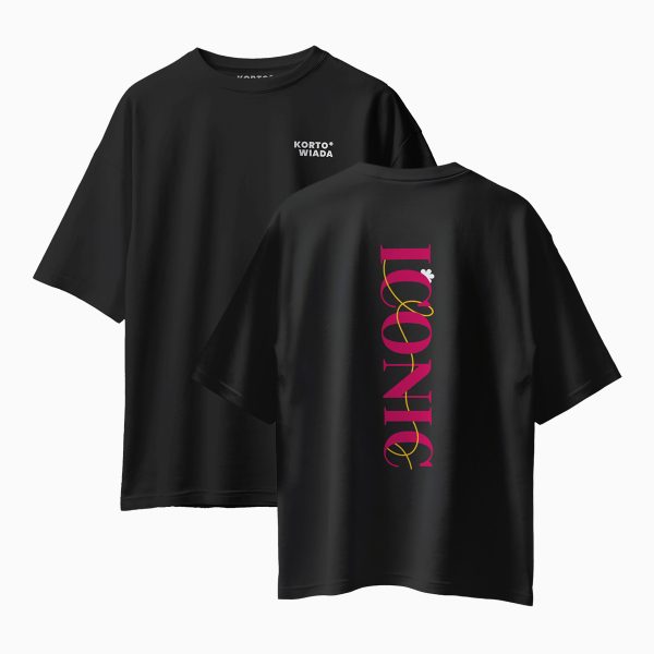 Na piersi znajduje się nadrukowany biały napis „Kortowiada”, który nadaje koszulce charakteru. Ten sam biały nadruk umieszczony jest na karku – zamiast tradycyjnej metki, co zwiększa komfort noszenia. Tył przyciąga uwagę kolorowym napisem – ICONIC, który wyróżnia projekt i podkreśla jego unikalność.